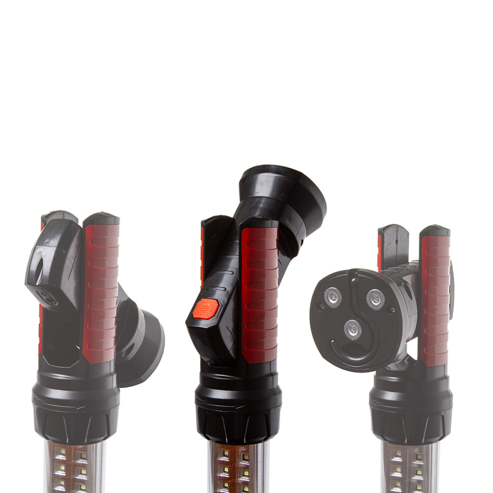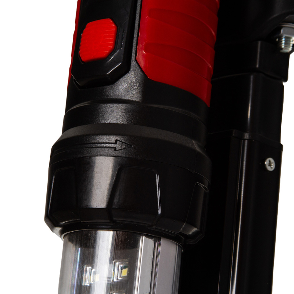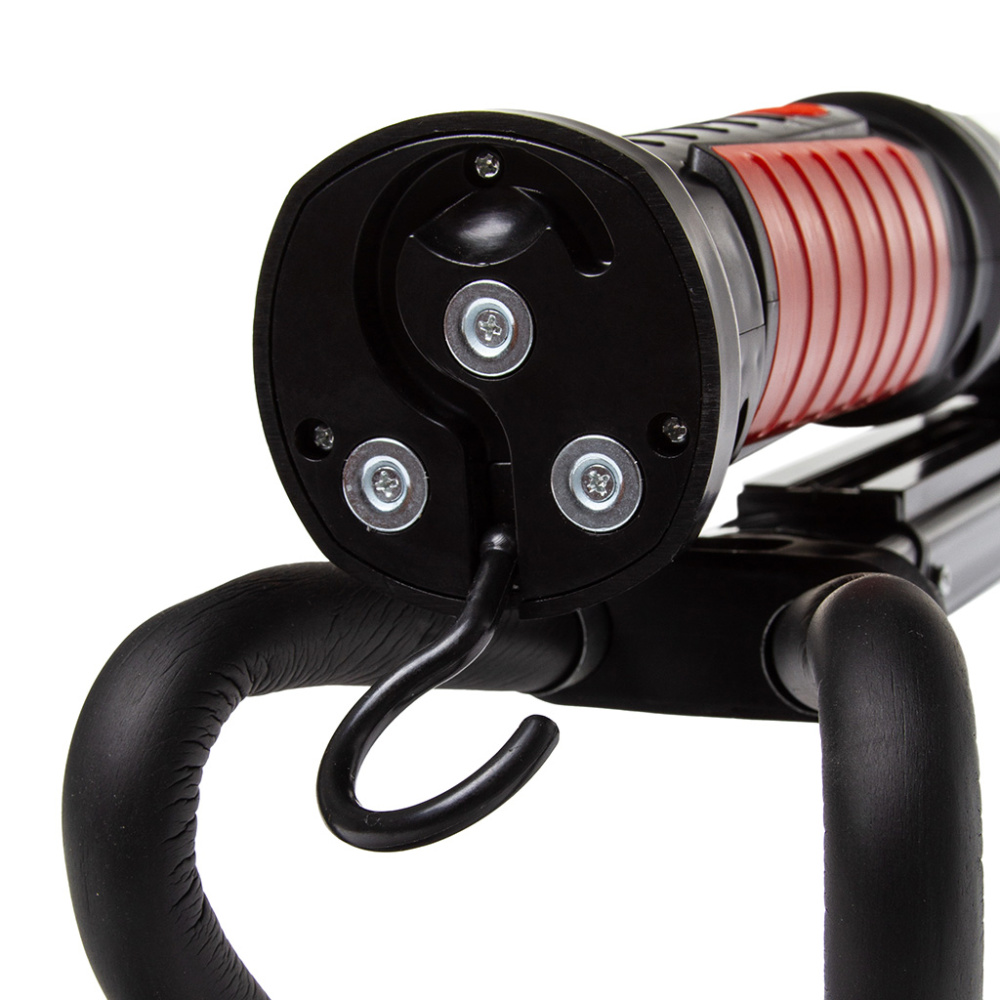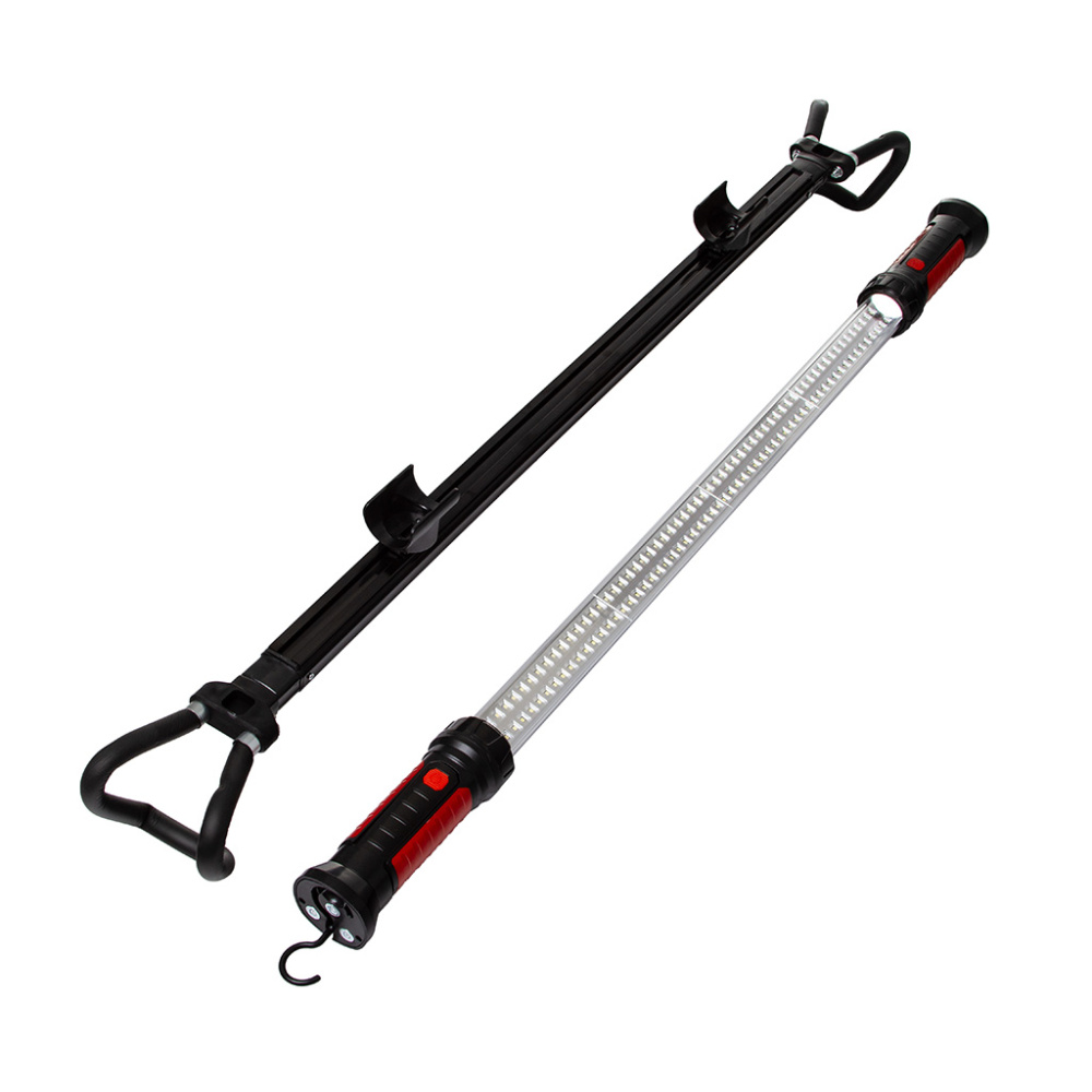 Spēcīgs magnēts rokturu galos. Papildu āķi uz rokturiem. Darbnīcas lampa ir