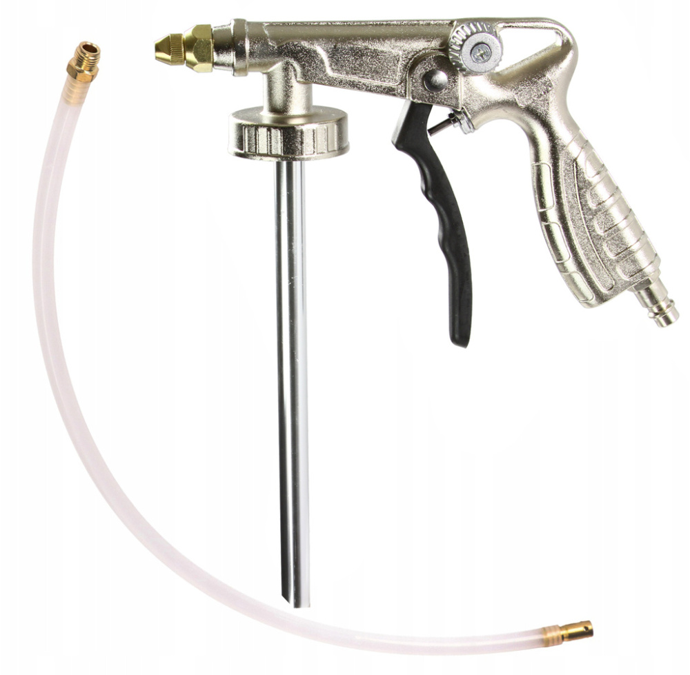Pistole ir paredzēta pretkorozijas līdzekļu uzklāšanai un automašīnu šasijas konservēšanai ar bitumena līdzekļiem.