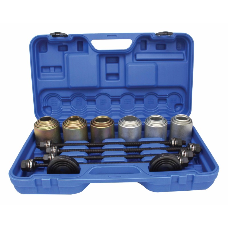 Vilkšanas un spiešanas uzmavas komplekts ar vilkšanas vārpstām un uzgriežņiem ir paredzēts bukšu, gultņu un blīvju noņemšanai un uzstādīšanai. Viss instrumentu komplekts ir ar pilnībā universālu pielietojumu automašīnām, LGV vai HGV. Viss piemērots klusajiem gultņiem, hidrauliskajiem gultņiem, gultņu buksēm, lodīšu gultņiem, vārpstu blīvējumiem, gumijas gultņiem u.c. Instruments ir savietojams arī ar darbnīcu presēm.