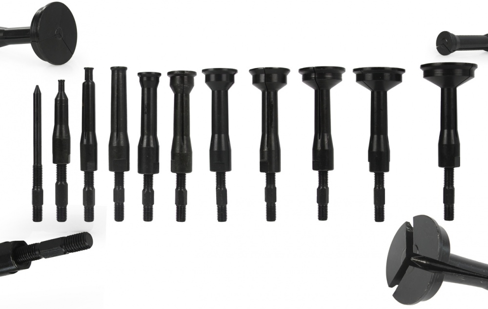 Komplektā ietilpst 10 satvērēji, kuri ir paredzēti gultņiem un buksēm ar sekojošiem iekšējiem diametriem: