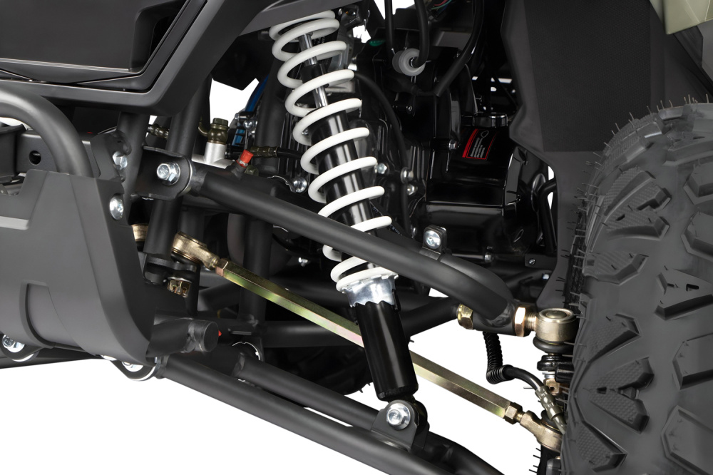 | šasija | Hidrauliskie amortizatori, regulējama sliede |