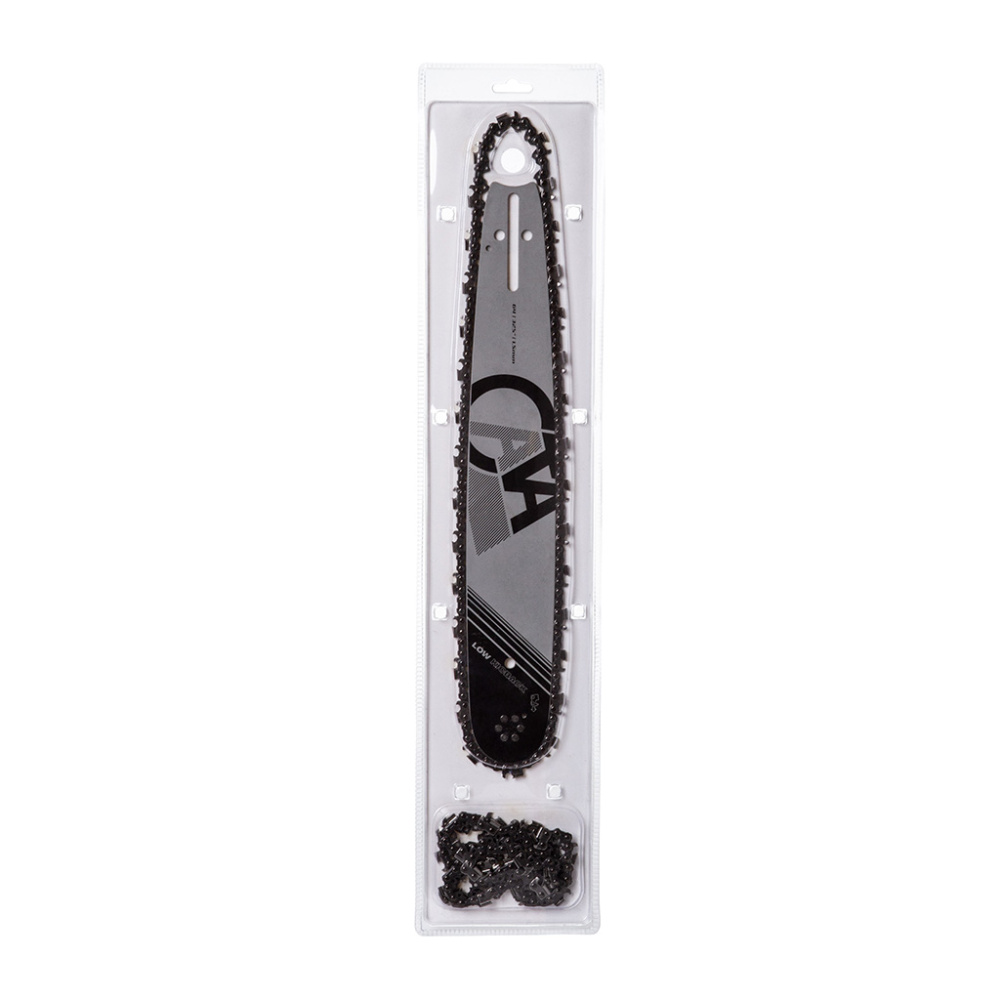zāģa jauda griešanas veiktspējai. Komplektā ietilpst divas ķēdes vadotnei.